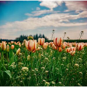 Taken with a Lubitel 116b twin lens at the Woodenshoe Tulip festival in Woodburn, Oregon. Limited Edition 120mm Lomography F2 film.