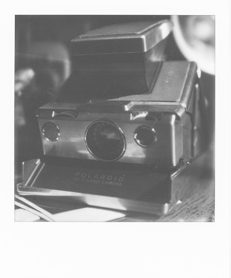 Vintage folding polaroid taken with a vintage SX70 Sonar on black and white film.